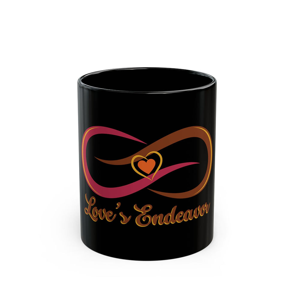 Love's Endeavor Black Mug — Infinity Heart Coffee Cup (11oz & 15oz)